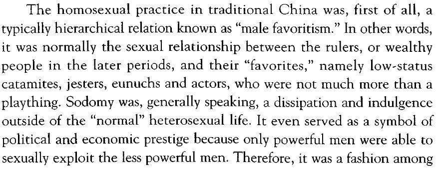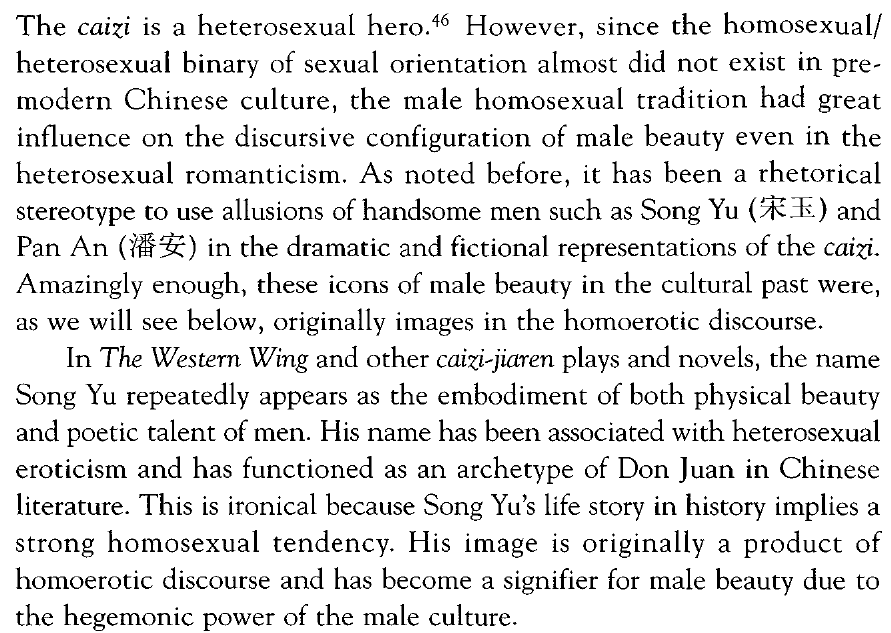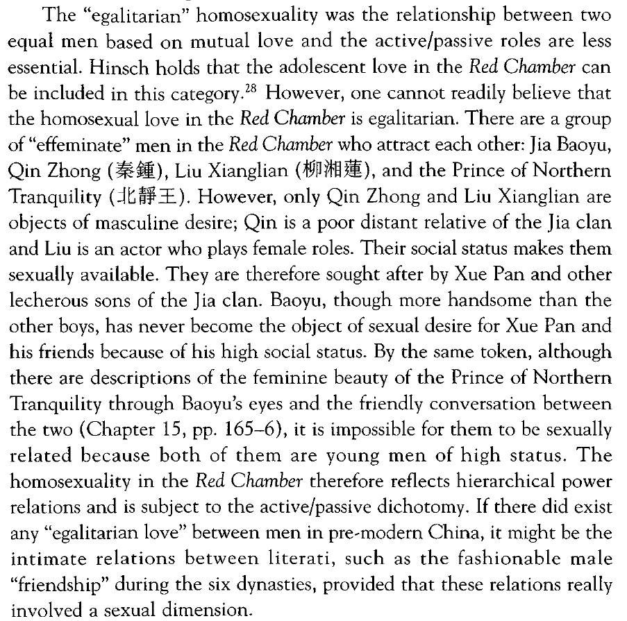 I hope you don’t mind the fact that Professor Wu has used David Hawkes’ terms for the names of the characters. Anyway, Professor Wu goes on to describe how the homoeroticism here is largely an echo of homoeroticism in other contemporary works of Chinese fiction: