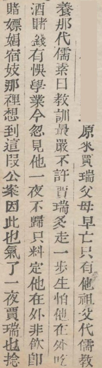 And so Jia Rui spent a freezing night outdoors, and then received a beating. Weak from the beating and starving, he had to kneel down in the wind and recite his lessons, which was a torment beyond description.