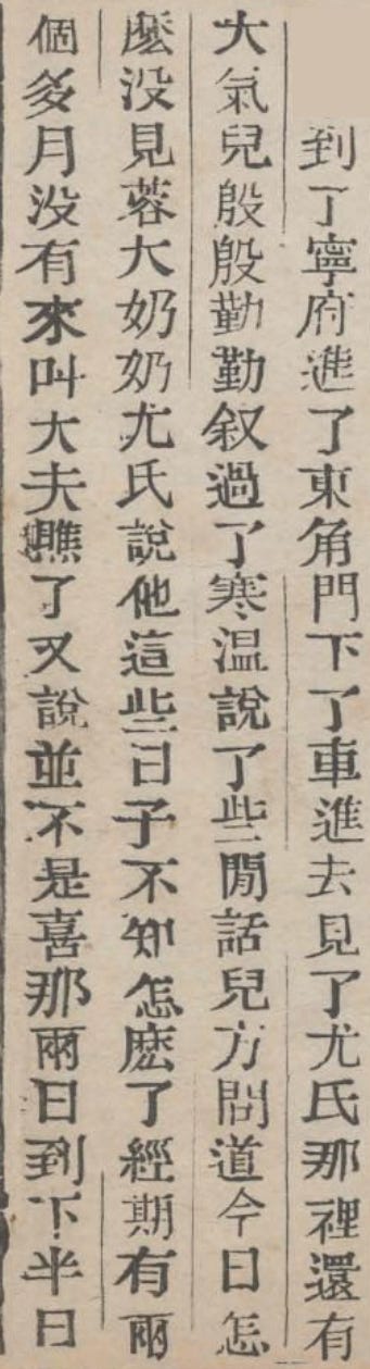 到了寧府,進了東角門,下了車,進去見了尤氏,那裡還有大氣兒?殷殷勤勤敘過了寒溫,說了些閒話兒,方問道:「今日怎麼沒見蓉大奶奶?」