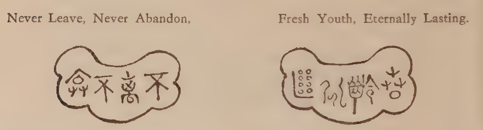 Baoyu held the locket in his hand and examined it. As expected, each side had four characters, making a total of eight characters forming two auspicious couplets. They have been reproduced in an illustration below: