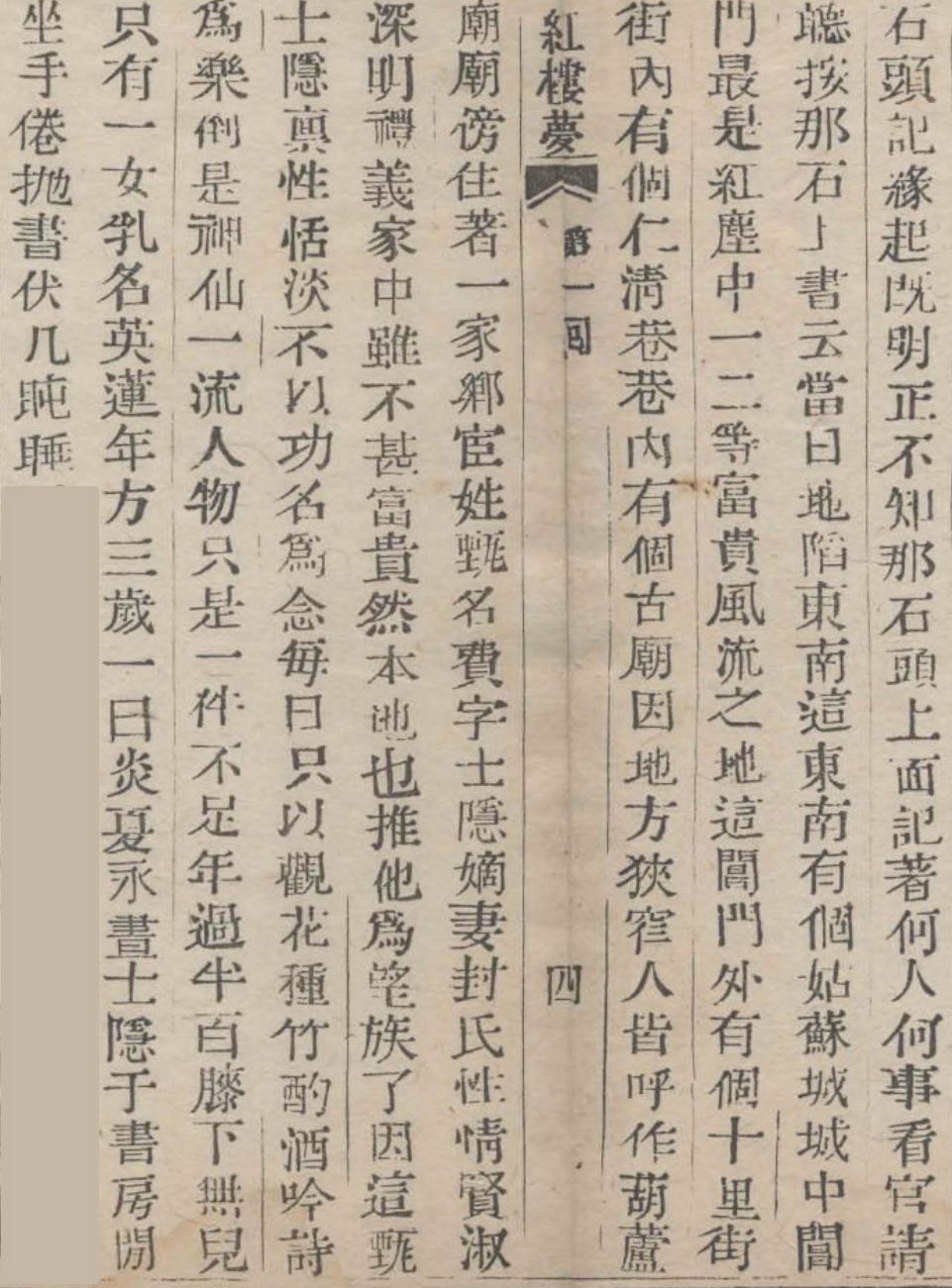 《石頭記》緣起既明,正不知那石頭上面記著何人何事?看官請聽: