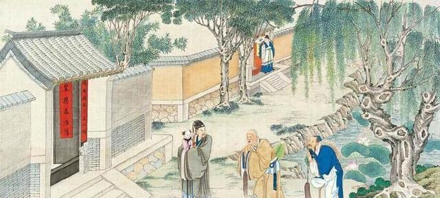 In a dream, Zhen Shiyin asked the Buddhist monk and Taoist priest to show him the way to gain enlightenment in order to help him “escape the pain of karmic suffering.” The monk and priest told him it was a celestial secret, showed him the stone, told him to remember their names, and left him confused.